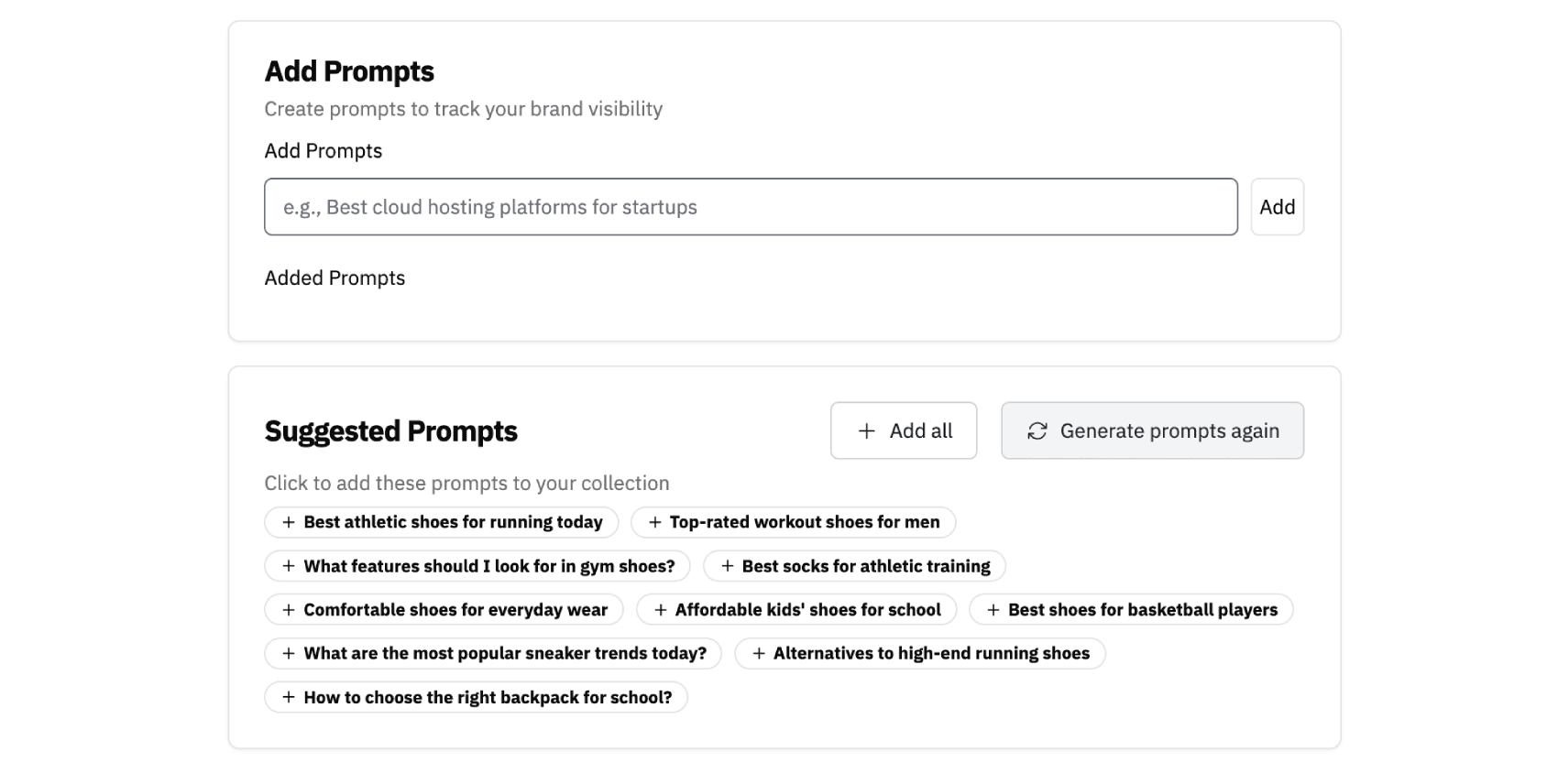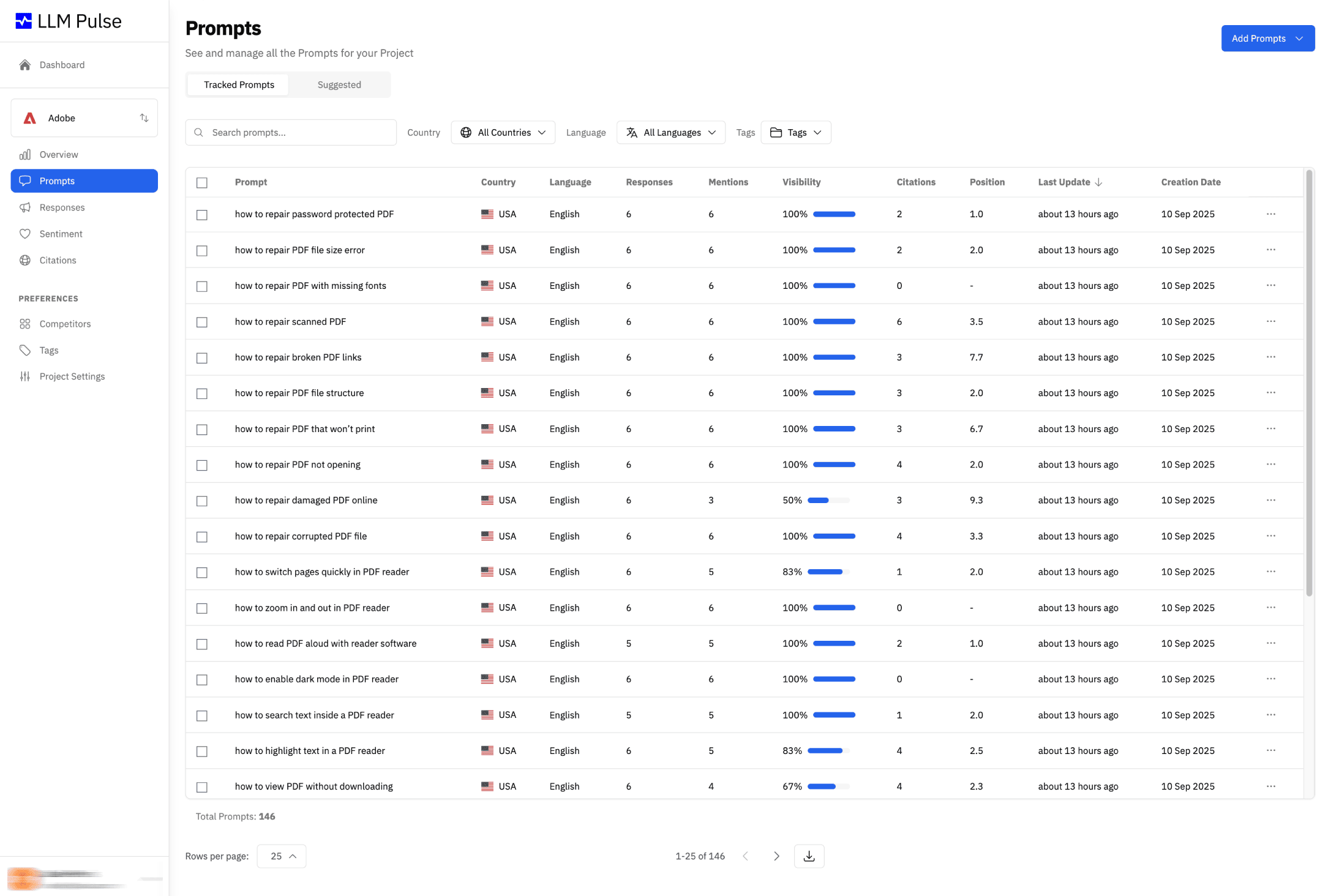 Figure out the most relevant prompts to track for your brand effortlessly—and keep them organized with tags.