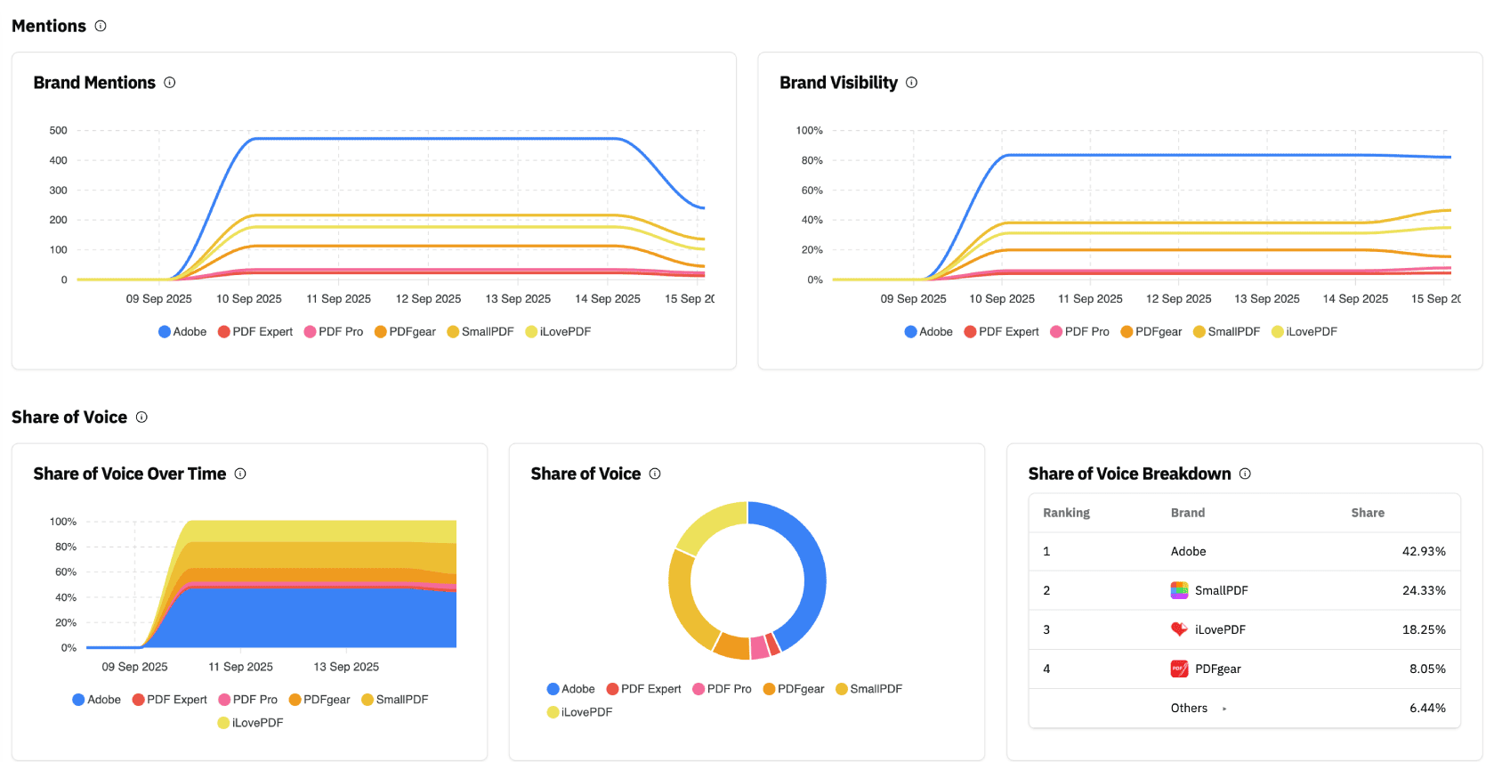Monitor your brand's visibility and influence across the fast-moving landscape of AI search and compare against competitors.