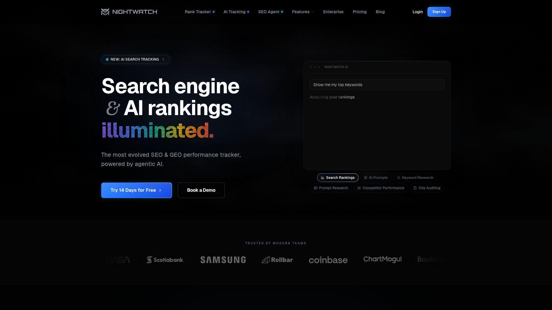 Nightwatch is an established SEO rank tracking tool that has added ChatGPT monitoring capabilities for teams that want to track AI visibility without abandoning their existing SEO workflow. It’s a pragmatic choice for SEO professionals who want incremental AI tracking rather than a full platform switch.