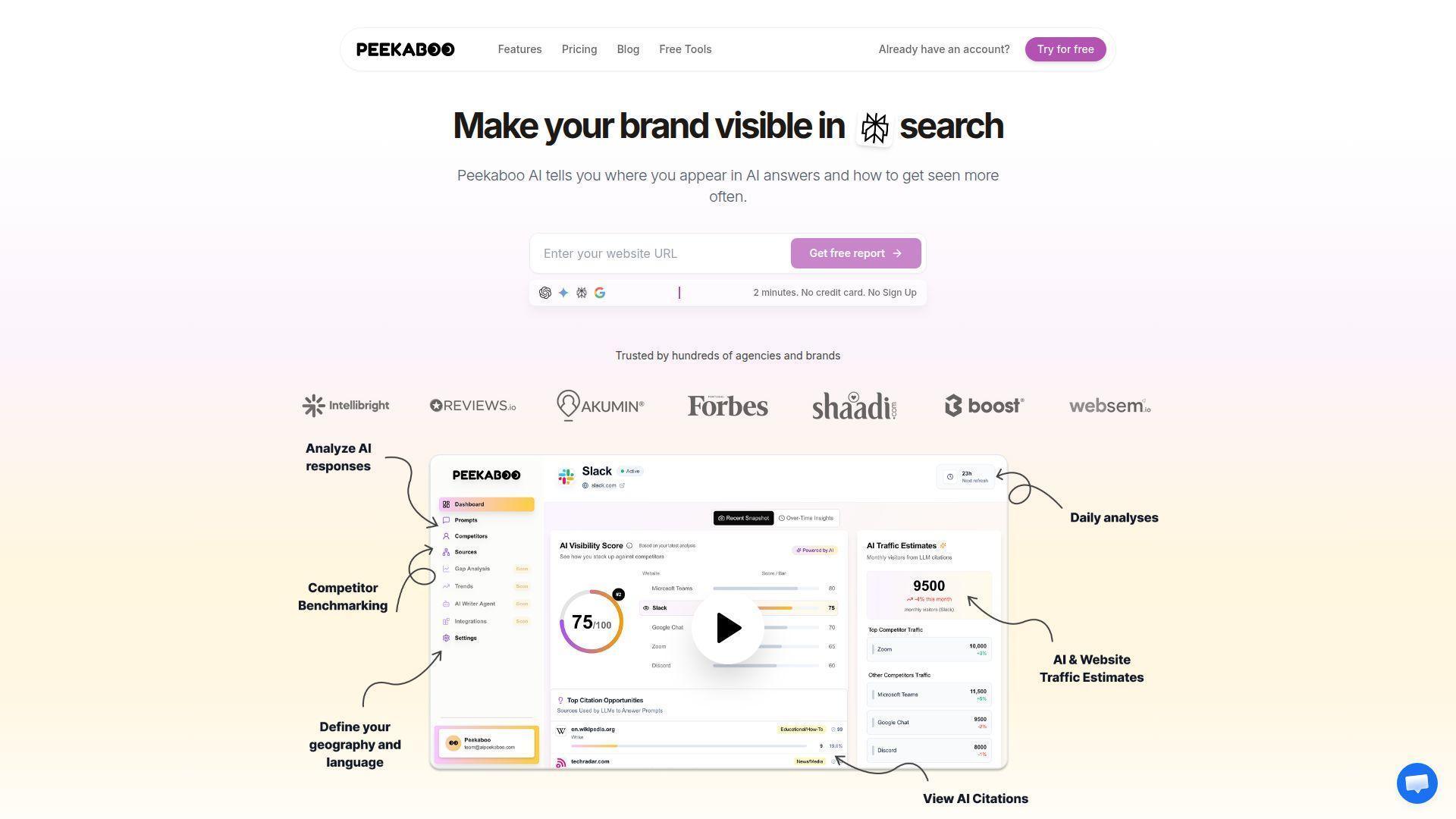 AI Peekaboo takes a minimalist approach to ChatGPT tracking. With a free tier available, it’s the most accessible entry point for brands that want to dip their toes into AI visibility monitoring without any financial commitment.