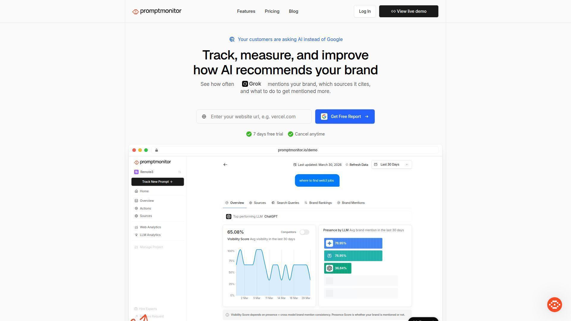 - Multi-model monitoring across several major AI platforms