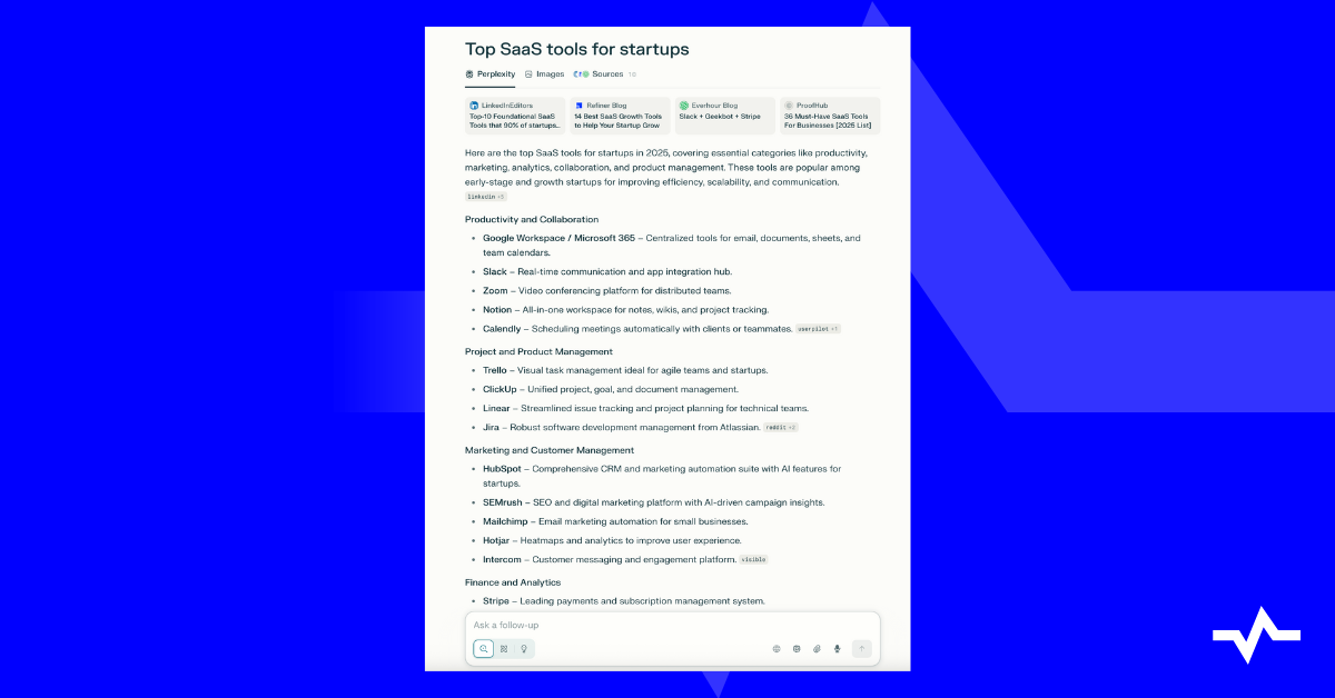 - Review the AI-generated summary and see if your brand appears among the mentioned sources or recommendations.